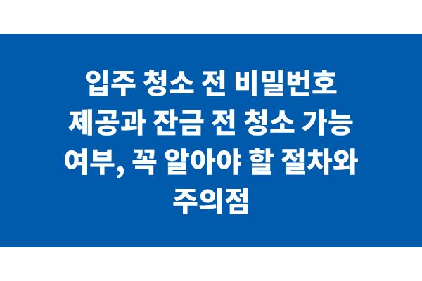 입주 청소 전 비밀번호 제공과 잔금 전 청소 가능 여부, 꼭 알아야 할 절차와 주의점