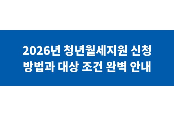 2026년 청년월세지원 신청 방법과 대상 조건 완벽 안내