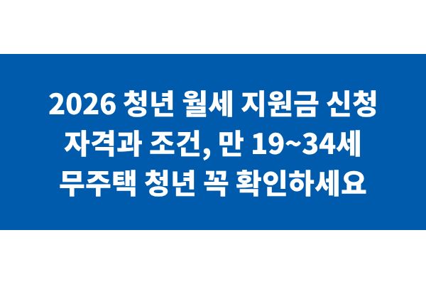 2026 청년 월세 지원금 신청 자격과 조건, 만 19~34세 무주택 청년 꼭 확인하세요