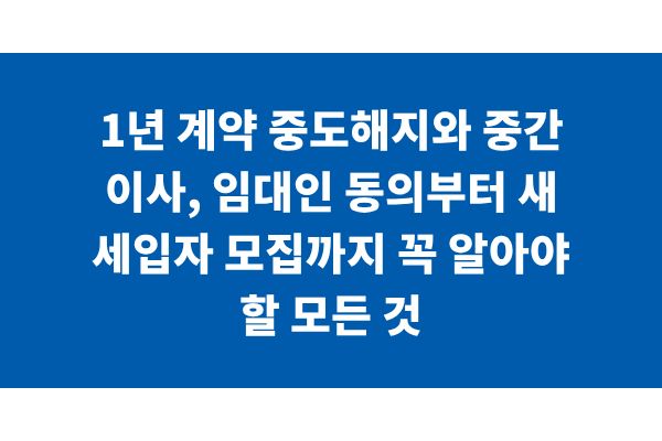 1년 계약 중도해지와 중간 이사, 임대인 동의부터 새 세입자 모집까지 꼭 알아야 할 모든 것