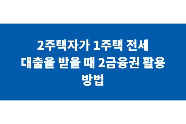 2주택자가 1주택 전세 대출을 받을 때 2금융권 활용 방법