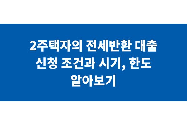 2주택자의 전세반환 대출 신청 조건과 시기, 한도 알아보기