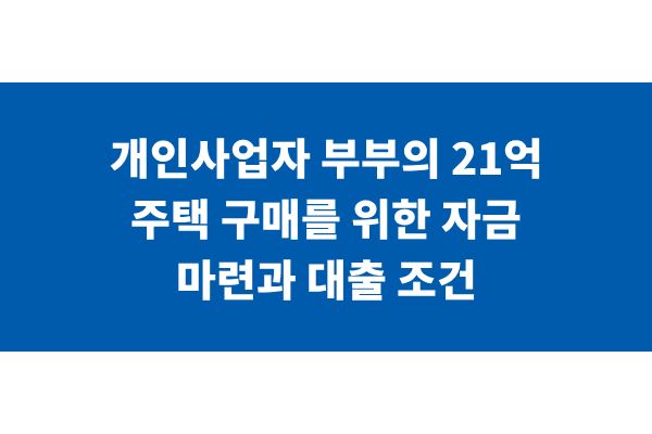 개인사업자 부부의 21억 주택 구매를 위한 자금 마련과 대출 조건
