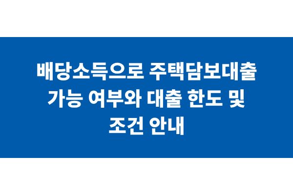 배당소득으로 주택담보대출 가능 여부와 대출 한도 및 조건 안내