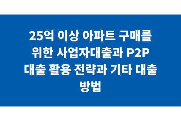 25억 이상 아파트 구매를 위한 사업자대출과 P2P 대출 활용 전략과 기타 대출 방법