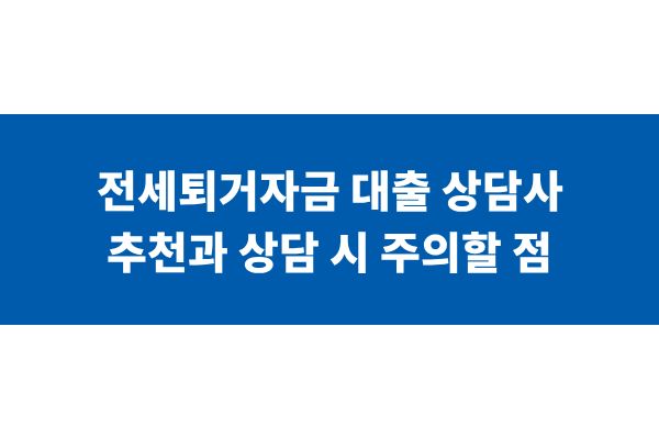 전세퇴거자금 대출 상담사 추천과 상담 시 주의할 점