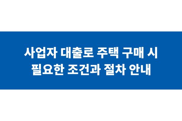 사업자 대출로 주택 구매 시 필요한 조건과 절차 안내