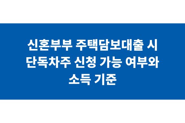 신혼부부 주택담보대출 시 단독차주 신청 가능 여부와 소득 기준