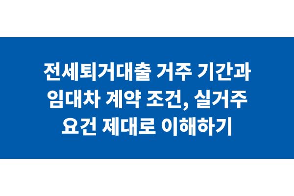 전세퇴거대출 거주 기간과 임대차 계약 조건, 실거주 요건 제대로 이해하기