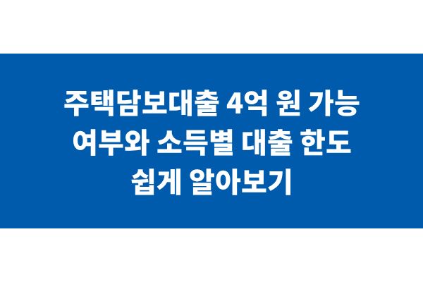 주택담보대출 4억 원 가능 여부와 소득별 대출 한도 쉽게 알아보기
