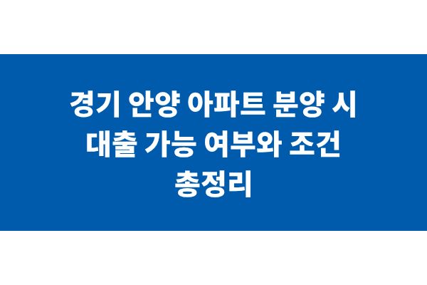 경기 안양 아파트 분양 시 대출 가능 여부와 조건 총정리