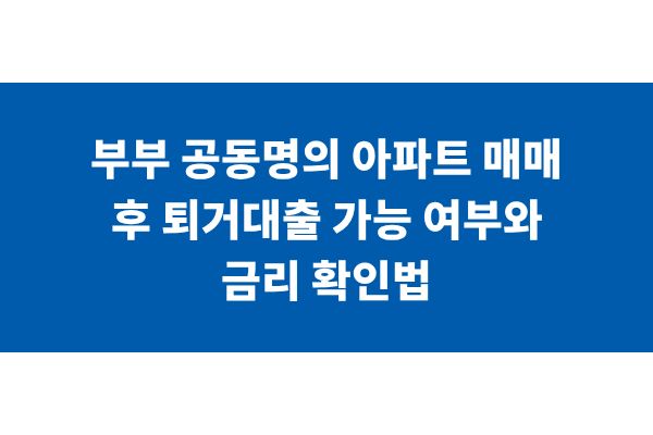 부부 공동명의 아파트 매매 후 퇴거대출 가능 여부와 금리 확인법