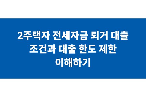 2주택자 전세자금 퇴거 대출 조건과 대출 한도 제한 이해하기