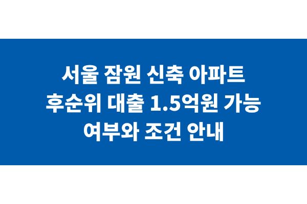 서울 잠원 신축 아파트 후순위 대출 1.5억원 가능 여부와 조건 안내