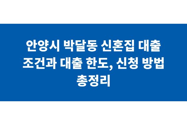 안양시 박달동 신혼집 대출 조건과 대출 한도, 신청 방법 총정리