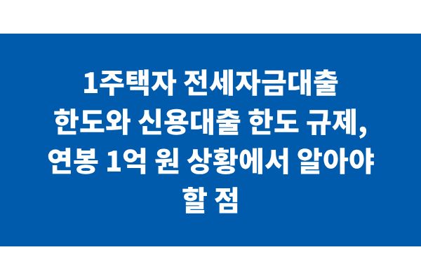 1주택자 전세자금대출 한도와 신용대출 한도 규제, 연봉 1억 원 상황에서 알아야 할 점