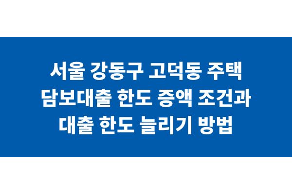 서울 강동구 고덕동 주택 담보대출 한도 증액 조건과 대출 한도 늘리기 방법