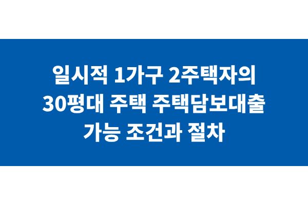 일시적 1가구 2주택자의 30평대 주택 주택담보대출 가능 조건과 절차