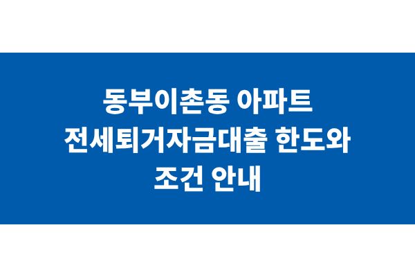 동부이촌동 아파트 전세퇴거자금대출 한도와 조건 안내