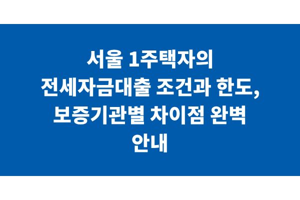 서울 1주택자의 전세자금대출 조건과 한도, 보증기관별 차이점 완벽 안내