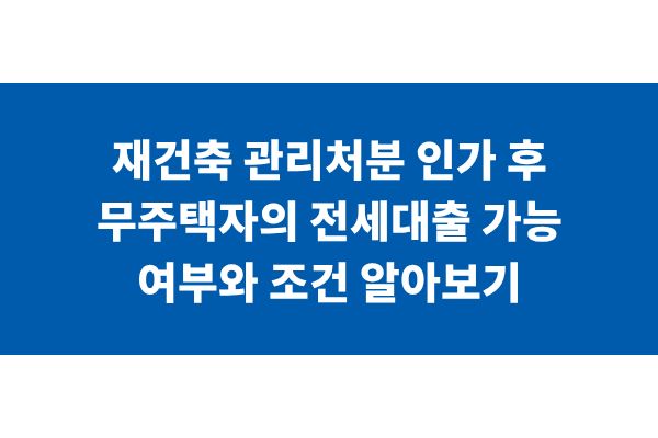재건축 관리처분 인가 후 무주택자의 전세대출 가능 여부와 조건 알아보기