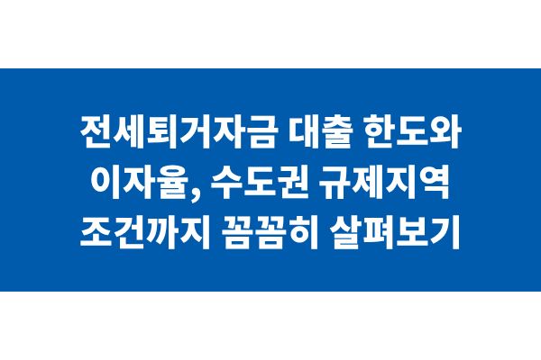 전세퇴거자금 대출 한도와 이자율, 수도권 규제지역 조건까지 꼼꼼히 살펴보기