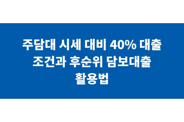 주담대 시세 대비 40% 대출 조건과 후순위 담보대출 활용법