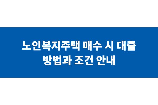 노인복지주택 매수 시 대출 방법과 조건 안내