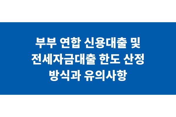 부부 연합 신용대출 및 전세자금대출 한도 산정 방식과 유의사항