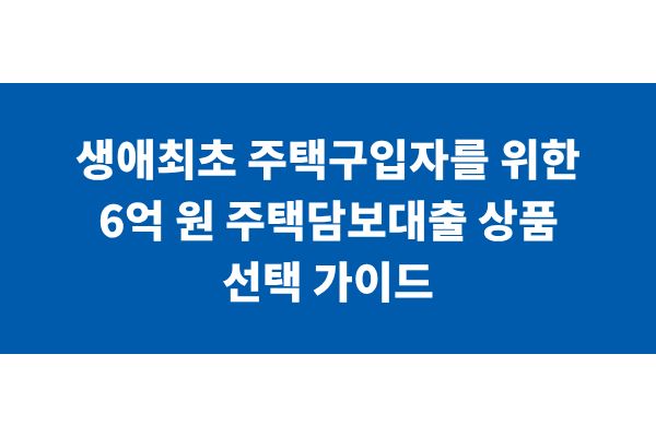 생애최초 주택구입자를 위한 6억 원 주택담보대출 상품 선택 가이드