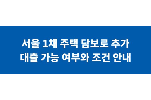 서울 1채 주택 담보로 추가 대출 가능 여부와 조건 안내