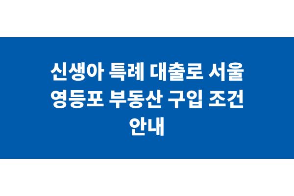 신생아 특례 대출로 서울 영등포 부동산 구입 조건 안내