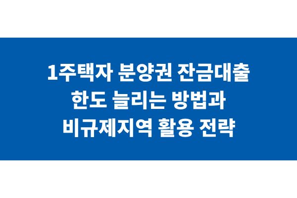 1주택자 분양권 잔금대출 한도 늘리는 방법과 비규제지역 활용 전략