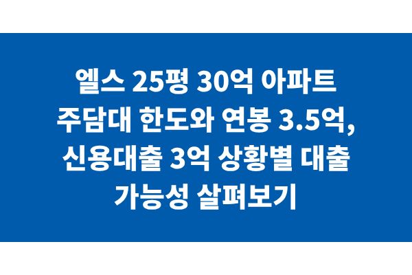 엘스 25평 30억 아파트 주담대 한도와 연봉 3.5억, 신용대출 3억 상황별 대출 가능성 살펴보기