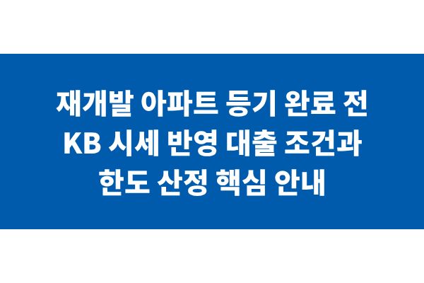 재개발 아파트 등기 완료 전 KB 시세 반영 대출 조건과 한도 산정 핵심 안내