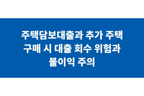 주택담보대출과 추가 주택 구매 시 대출 회수 위험과 불이익 주의