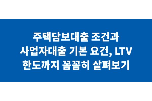 주택담보대출 조건과 사업자대출 기본 요건, LTV 한도까지 꼼꼼히 살펴보기