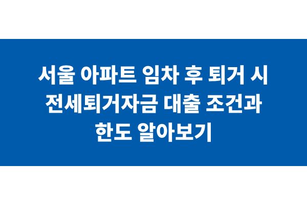 서울 아파트 임차 후 퇴거 시 전세퇴거자금 대출 조건과 한도 알아보기