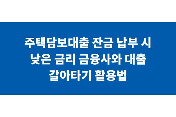 주택담보대출 잔금 납부 시 낮은 금리 금융사와 대출 갈아타기 활용법