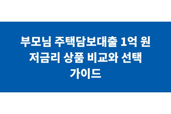 부모님 주택담보대출 1억 원 저금리 상품 비교와 선택 가이드