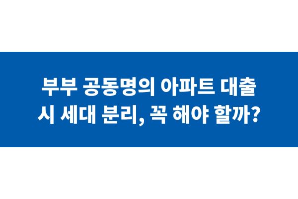 부부 공동명의 아파트 대출 시 세대 분리, 꼭 해야 할까?