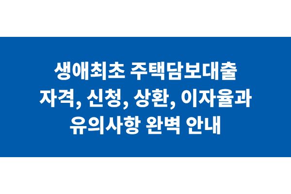 생애최초 주택담보대출 자격, 신청, 상환, 이자율과 유의사항 완벽 안내