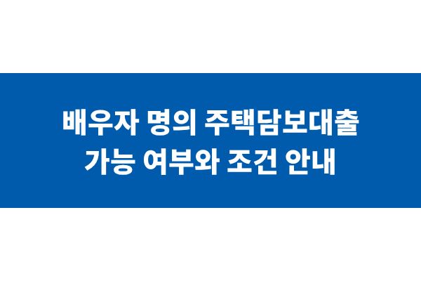 배우자 명의 주택담보대출 가능 여부와 조건 안내