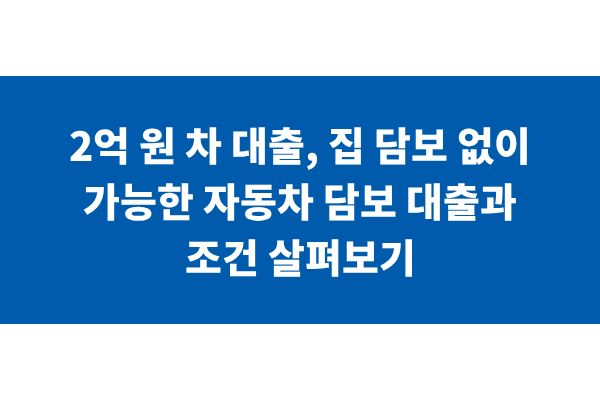 2억 원 차 대출, 집 담보 없이 가능한 자동차 담보 대출과 조건 살펴보기