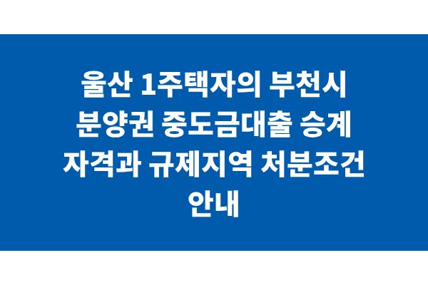 울산 1주택자의 부천시 분양권 중도금대출 승계 자격과 규제지역 처분조건 안내