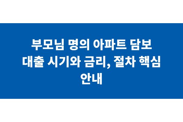 부모님 명의 아파트 담보 대출 시기와 금리, 절차 핵심 안내