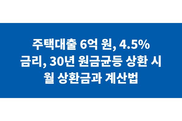 주택대출 6억 원, 4.5% 금리, 30년 원금균등 상환 시 월 상환금과 계산법