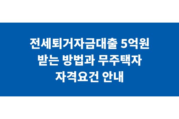 전세퇴거자금대출 5억원 받는 방법과 무주택자 자격요건 안내