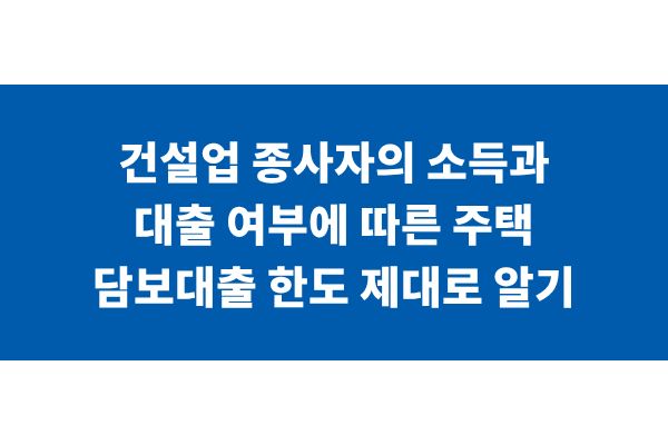 건설업 종사자의 소득과 대출 여부에 따른 주택 담보대출 한도 제대로 알기