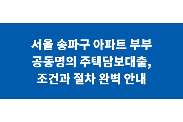 서울 송파구 아파트 부부 공동명의 주택담보대출, 조건과 절차 완벽 안내